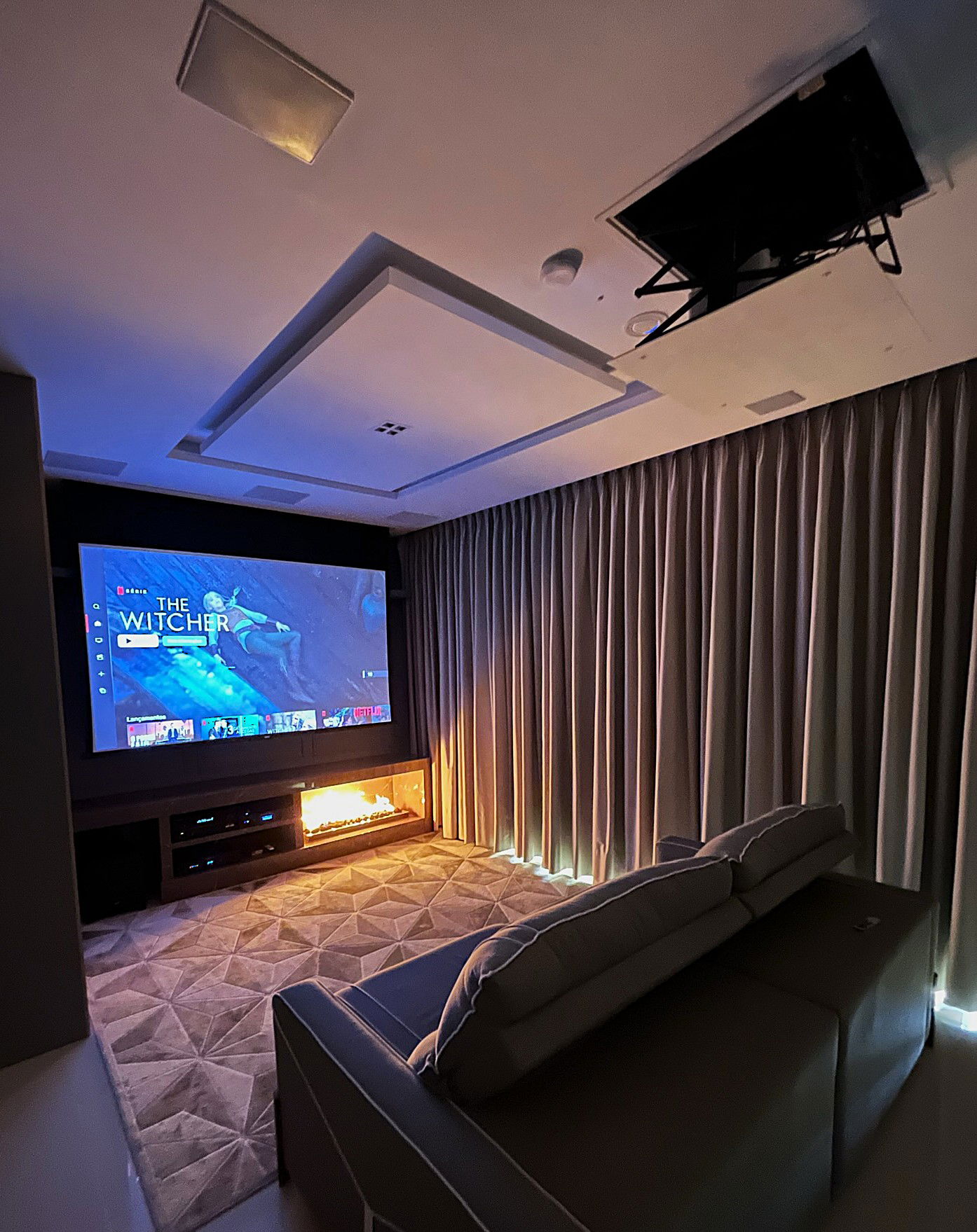 Som Ambiente, Home Cinema imersivo com tecnologia Dolby Atmos e projeção de imagem com alta definição.